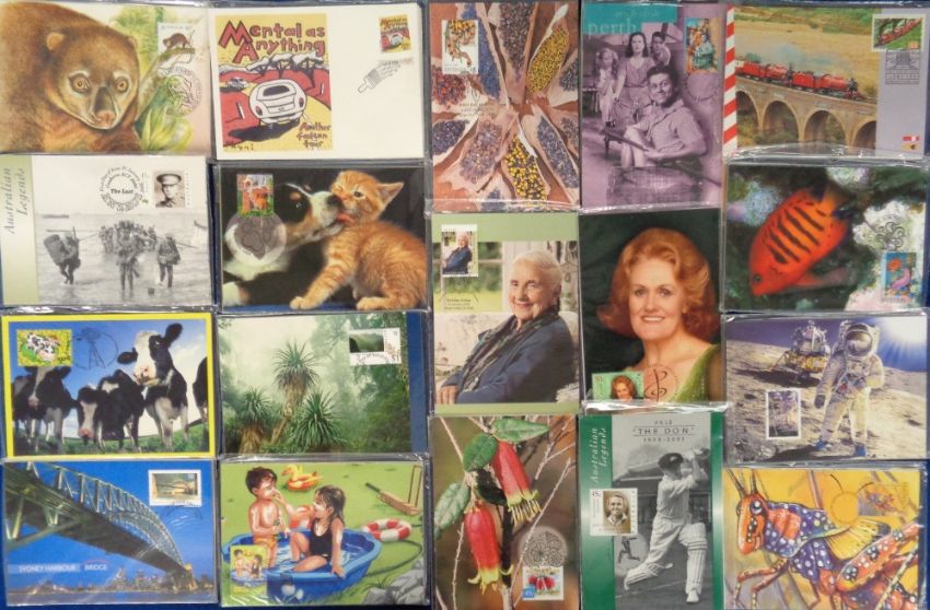 Stamps, Australian maxicards first day of issue with appropriate stamps, sealed in sets as received from the Bureau. (60)