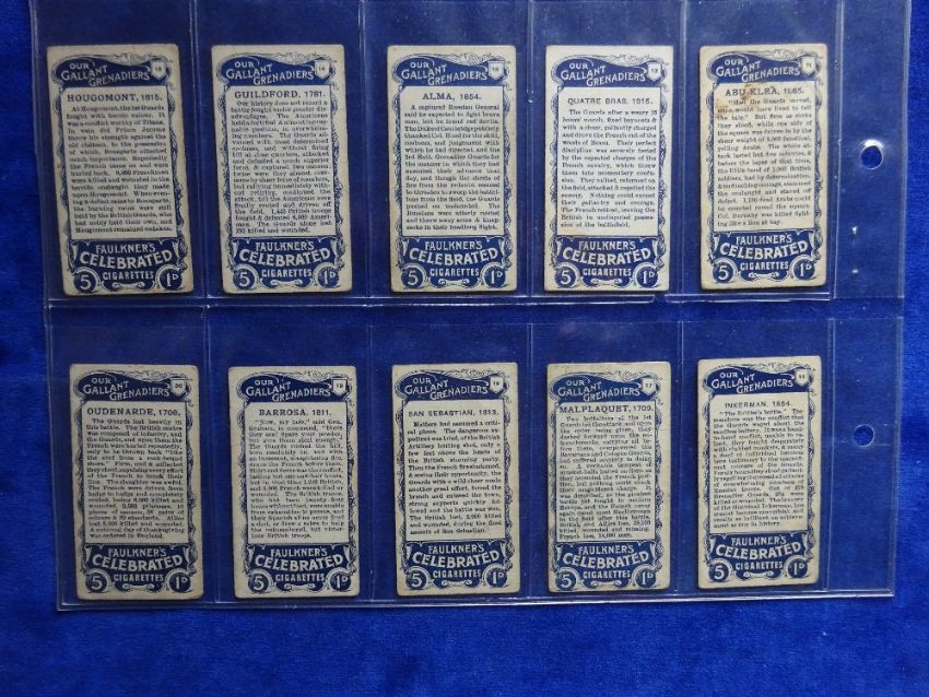 Cigarette cards, Faulkner Our Gallant Grenadiers 1st series, set 20 cards (all with no ITC Clause) (fair )