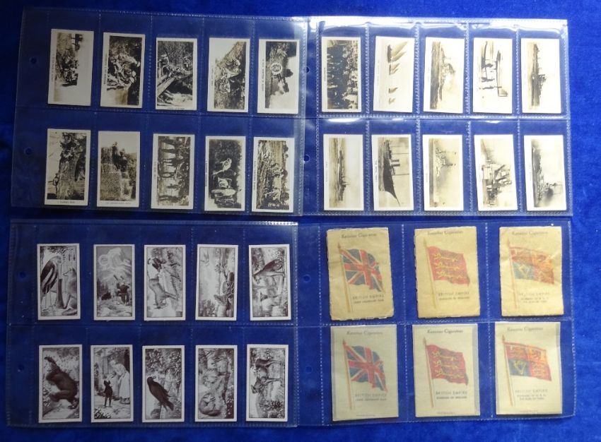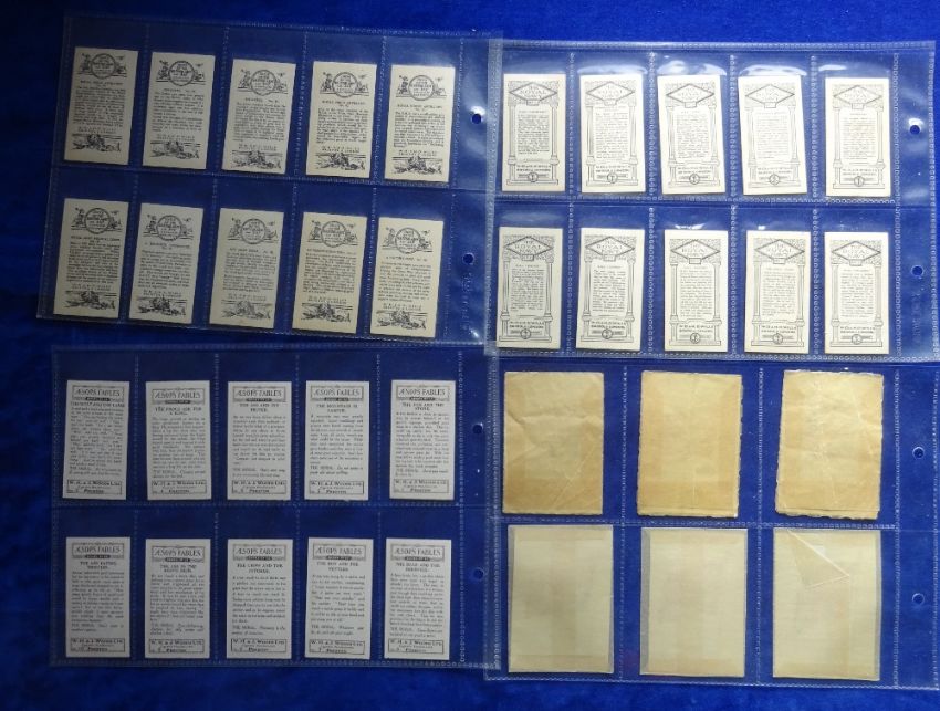 Cigarette cards, 7 sets, WJ Woods (2) Aesops Fables, Romance Royal Mail, J Wix (3) Flags of British Empire, with and without USA versions, Builders of Empire, Wills Overseas (2) Units of British Army RAF, The Royal Navy (gen gd)