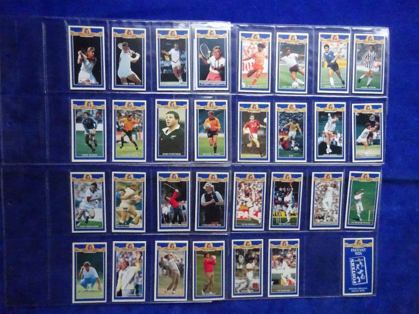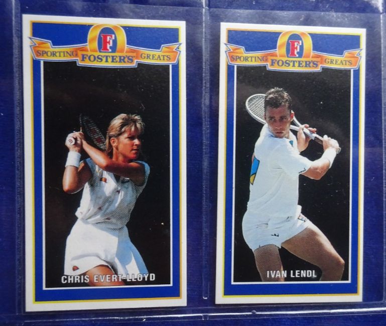 Trade cards, Fosters Sporting Heroes, set 30 cards plus instant win voucher. Includes scarcer Chris Evert card (exc)