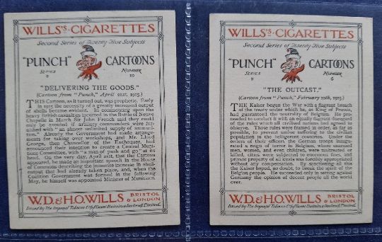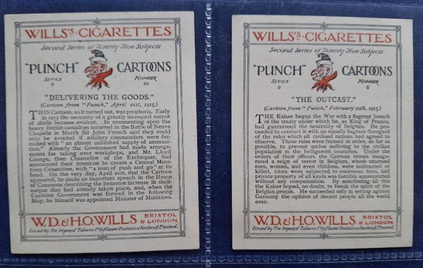 Cigarette cards, Wills Punch Cartoons scarcer 2nd series, 2 cards nos 6 & 10 (gd)