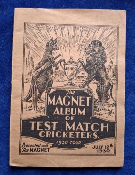 Trade card album, Cricket, The Magnet Album of Test Match Cricketers 1930, complete album, includes picture of Donald Bradman (some wear, but presentable)
