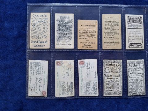 Cigarette & Trade cards, 66 more unusual scarcer cards, but all in lowish grade condition many series represented including Faulkner Cricketer, Murray Cricketer, Churchman Footballer (Brown), Taddy New Zealand Footballer, Smith Tour around World Postcard (3), Taddy, Hill, Allen & Ginter, Clarke, Australian Licorice etc (poor/fair)