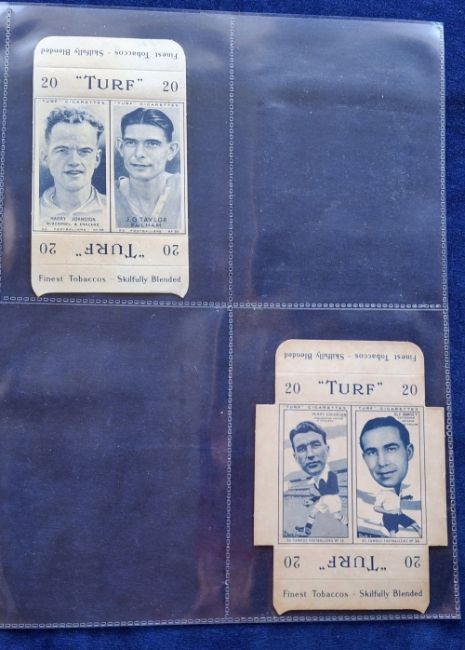 Cigarette cards, Carreras Turf, Footballers, uncut slides, 2 per card (set 25 cards, 50 player images) plus 1 card Famous Footballers (also uncut) (mixed gen fair/gd)
