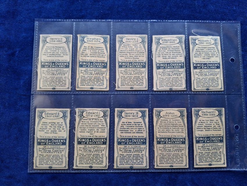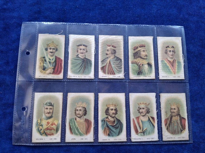 Cigarette cards, Wills Kings & Queens of England (silk) all with original backs (set 38 cards) (gen gd)