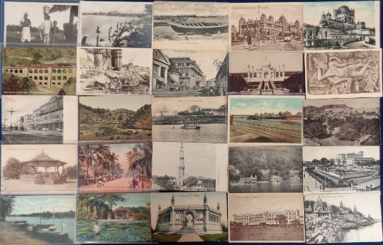Postcards, Foreign, a selection of approx. 78 cards of India with General P.O Bombay, ferry boat on Sangam Poona, Great Western Hotel Bombay, Madras Harbour, Chowringee Calcutta, Rail Station Dharmapur, Galleries at Dharmapur, Benares, Dhobies Madras, ethnic, towns, cities, scenic views, many cards of Kashmir, buildings etc (mixed condition)