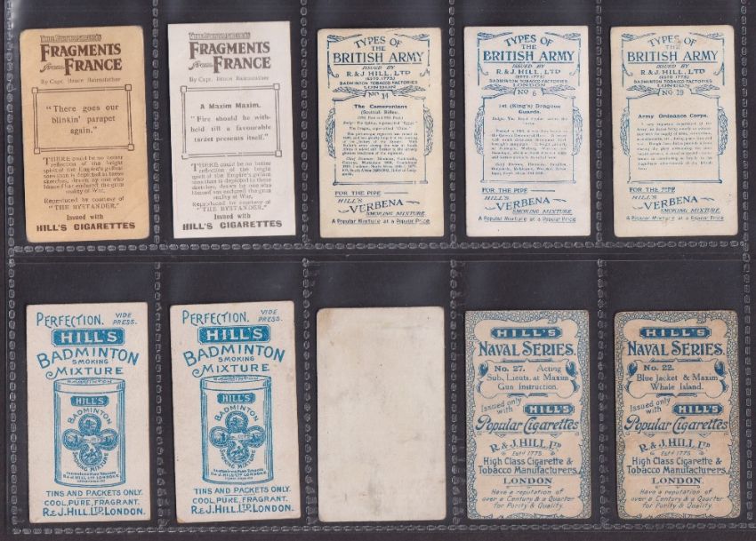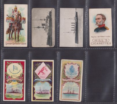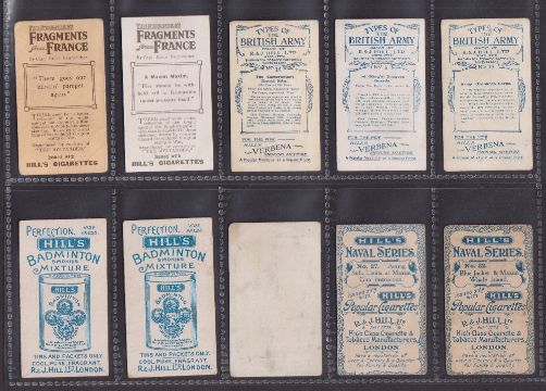 Cigarette cards, R J Hill, 17 cards Military themed, Types of the British Army Verbena (3), Fragments from France (2, 1 buff, 1 coloured), Naval Series (numbered, 2), Japanese series, Flags & Flags with Soldiers (2), Colonial Troops, British Navy Series, Boer War Generals Campaigners, Battleships & Crests (3) (mixed, fair/gd)