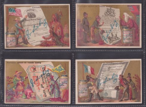 Trade cards, Liebig, 2 near sets, S76 Pictures of People 11/12 & S92 Passports of the World 10/12 both French language (few fair, gen gd)