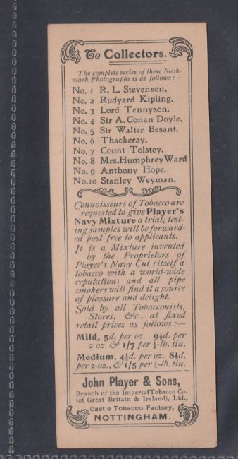 Cigarette cards, Player's 40 cards & 1 booklet, cards include Actresses (2), Actors & Actresses, Famous Authors Narrow (2), Gallery Beauty (3, 2 wide), Military Series, Everyday Phrases (2), Old England's Defenders (2), Overseas (10), Bookmark, etc, plus Trade Price list Castle Tobacco Factory 1901 (damage to cover of booklet, cards gen gd)