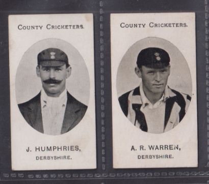 Cigarette cards, Taddy, County Cricketers, Derbyshire, 2 cards, J Humphries & A R Warren (some sl marks, gen gd)