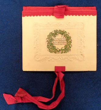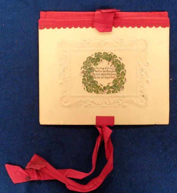 Ephemera, Victorian Greetings Cards, a collection of approx. 48 Valentines and birthday cards, to include a hand made folder 'for my dear Mama on her Birthday June 7 1857', dried flowers, paper lace, hand painted, silk, decoupage, 5 panel embossed fan (ribbon needs replacing) and a hand painted fan (gen gd, a few with adhesive marks to the reverse)