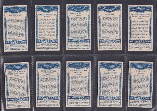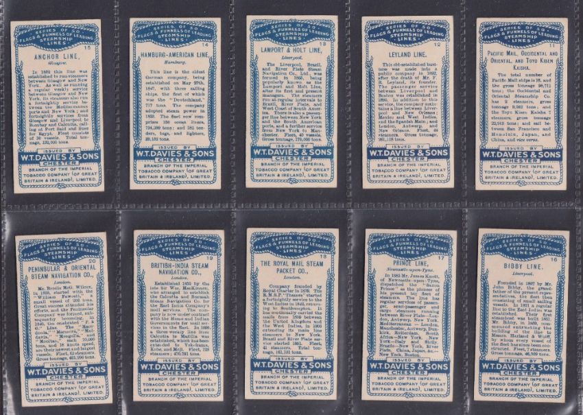 Cigarette cards, W T Davies & Sons, Flags & Funnels of Leading Steamship Lines (set 50 cards) (gd/vg)