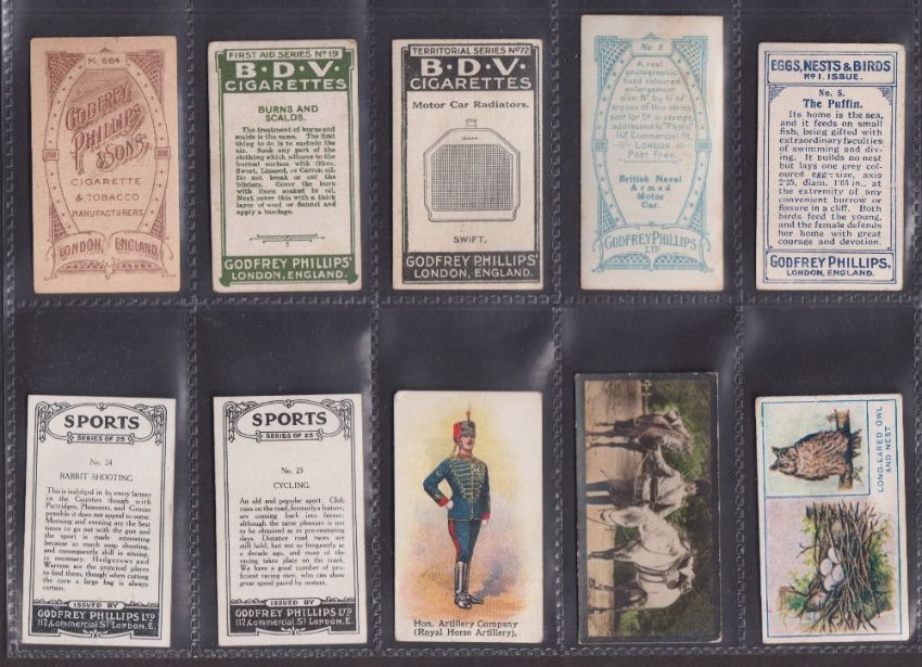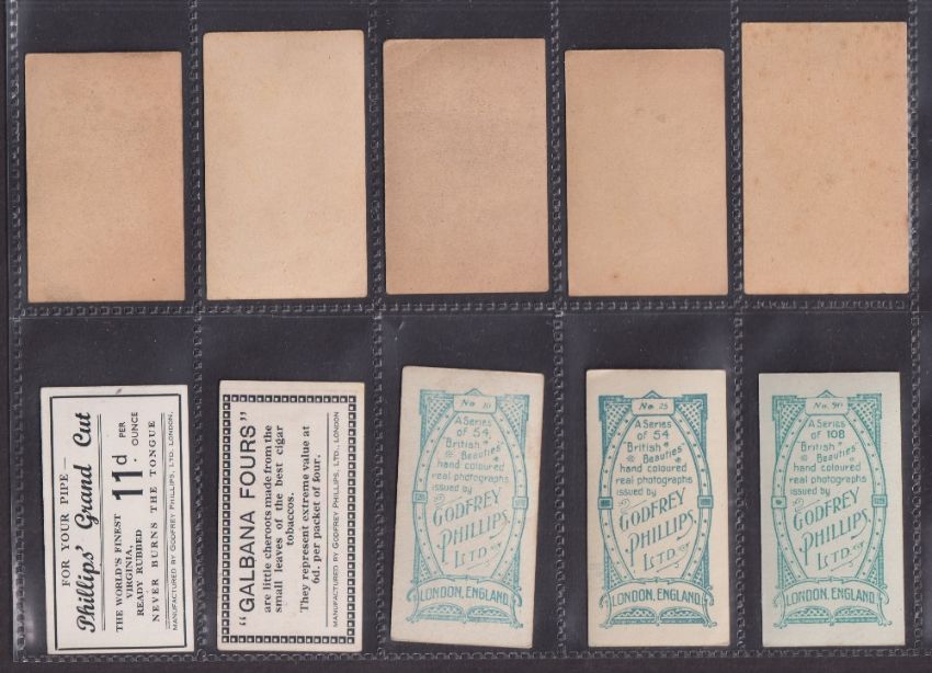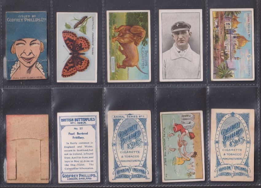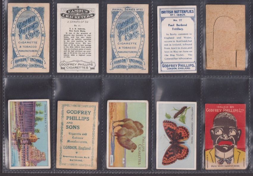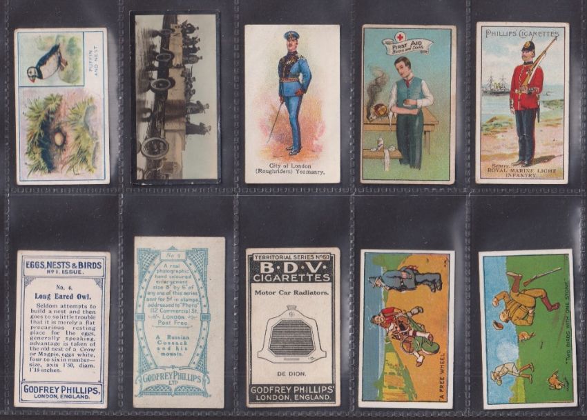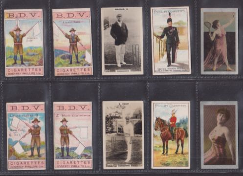 Cigarette cards, Godfrey Phillips 60 cards from various series including Beauties PLUMS (Plum front), Colonial Troops (3, possible slight trim), Types of British Troops, Boxer Rebellion (2), Morse Signalling (4), Beauties WI (2), Types British Soldiers (2), Indian Series (2), etc (gen gd except where stated above)