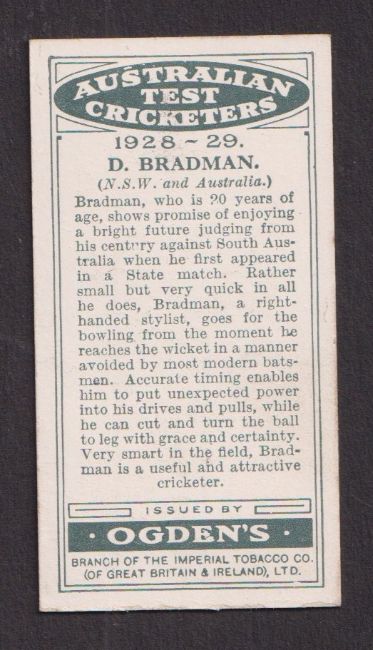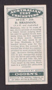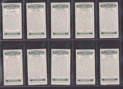 Cigarette cards, Ogden's Australian Test Cricketers (34/36 including Donald Bradman, missing Taylor, Tyldesley) (gen gd/vg, Bradman vg)