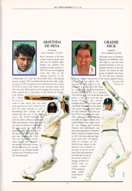 Cricket autographs, two programmes one from the Rothman's Cricket World Cup Tournament 1966 with multiple signatures inside front and back covers inc. Dexter, Snow, Cowdrey, Edrich & many others, sold with and MCC v Rest of The World programme from 18 Jul 1998 held at Lords with numerous signatures to player photograph & biography pages inc. Tendulkar, Hick, Donald, McGrath, Akram, Cairns, Ahmed etc (gd/vg)
