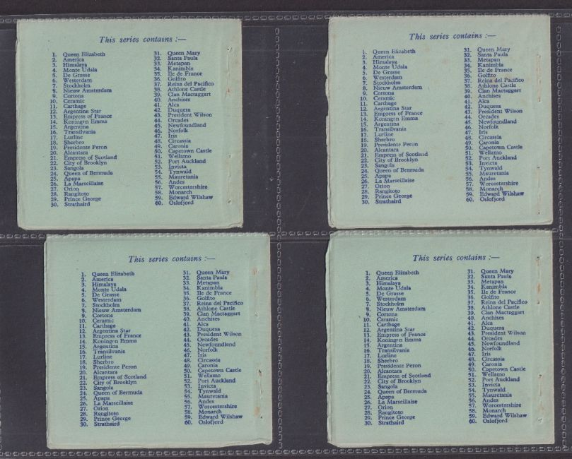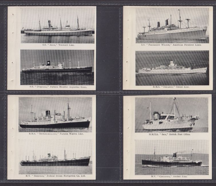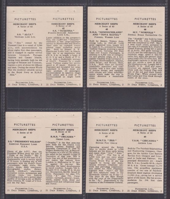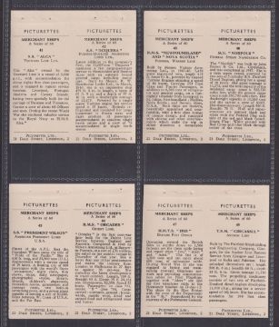 Trade cards, Picturettes Merchant Ships (set 60 cards in 30 joined pairs, sold with the 10 wrappers they were originally issued in) (cards with staple holes as original issued otherwise gen gd, some of the wrappers have wear / minor damage)