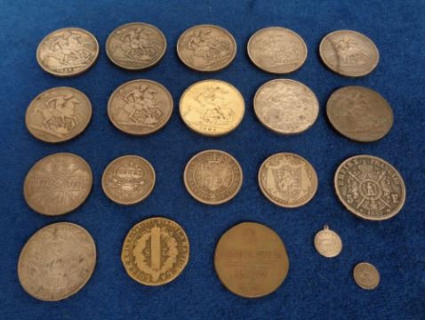 Coins, 20 coins to include French Louis XVI 1792 2 Sols, French Napoleon III 1867 5 Francs, Belgian Leopold II 1868 5 Francs, Russian Paul I 1799 2 Kopeks, Australian 1927 Florin, George III 1818 Silver Crown, George IV 1821 Crown, William IV 1836 Half Crown, 8 Victoria Crowns, a Victoria Double Florin a Victoria Half Crown and a Widow's Mite (mixed condition)