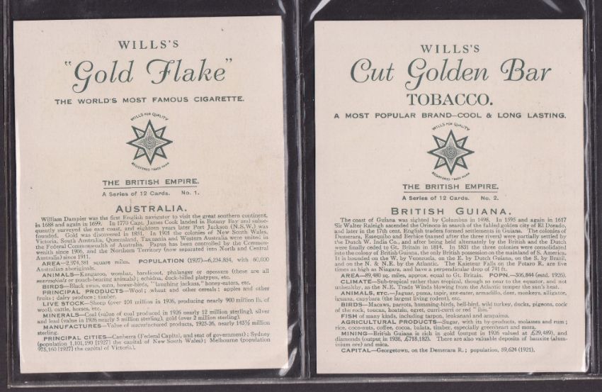 Cigarette cards, Wills, 2 sets, Industries of Britain, The British Empire (both sets P12 cards, gd)