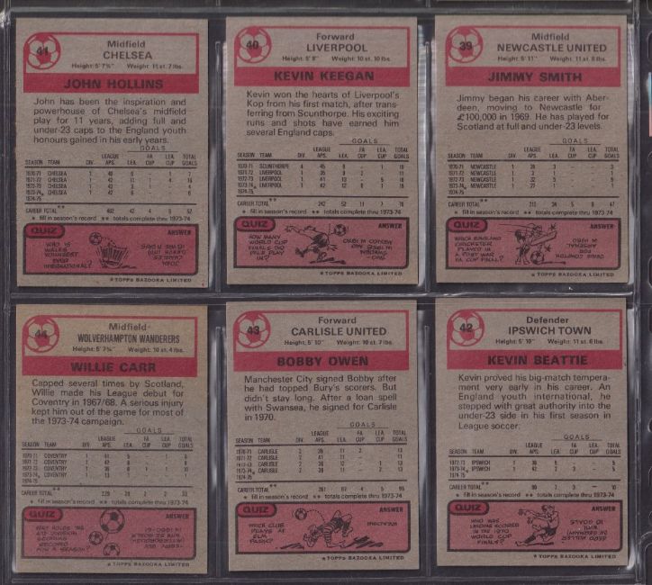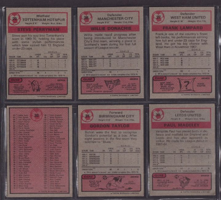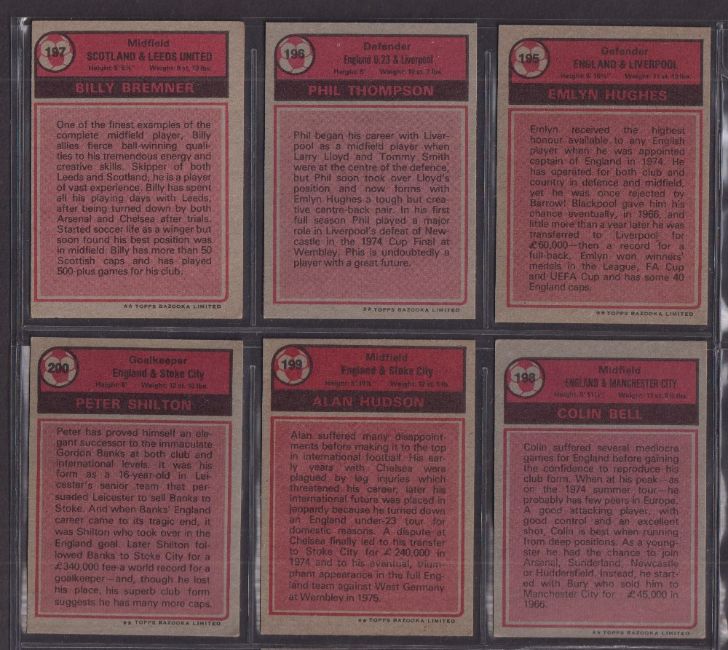 Trade cards, Topps Football 1974/75, Topps Bazooka, red / grey backs (set 220 cards) (gen vg a few gd)