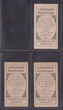 Cigarette cards, Taddy, Prominent Footballers (London Mixture), three cards, W. Woodcock, Manchester United and J. Mordue & H. Low (all slightly grubby, fair/gd) (3)