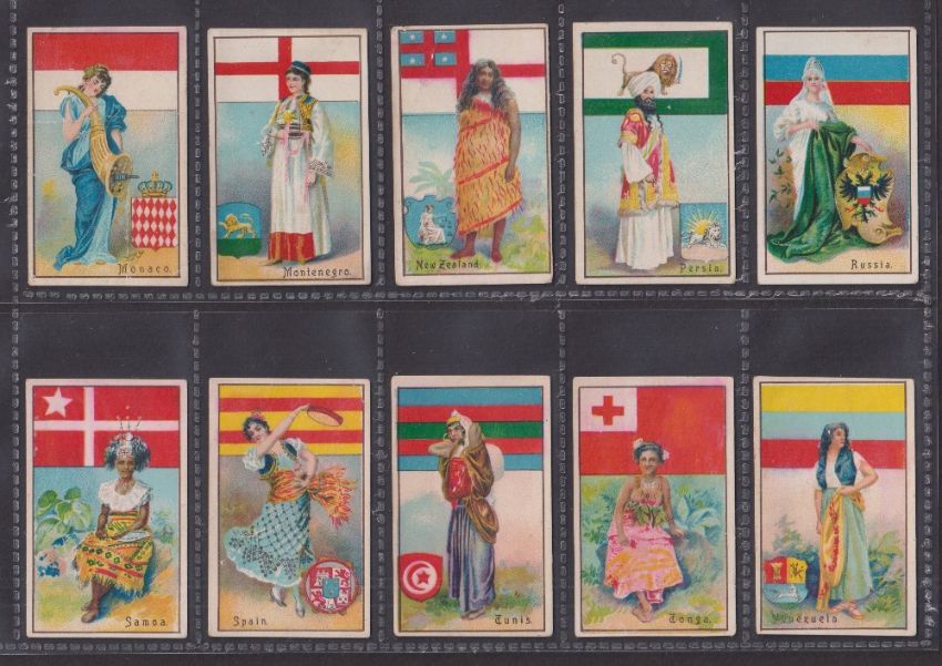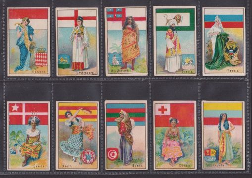 Cigarette cards, Duncan & Co, Flags, Arms & Types of Nations (blue backs), 20 cards (gen about gd)