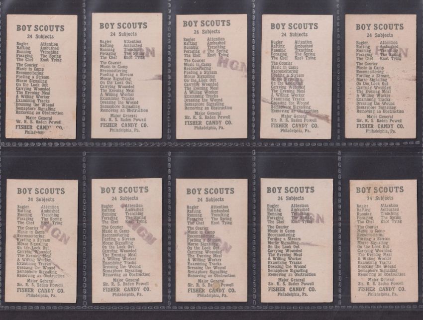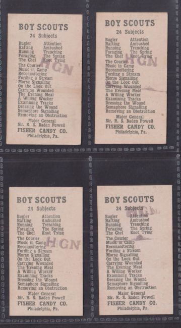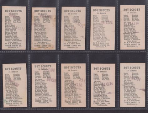 Trade cards, USA, Fisher Candy Co, Boys Scouts (set, 24 cards) (most with rubber stamp marks to backs o/w gd)