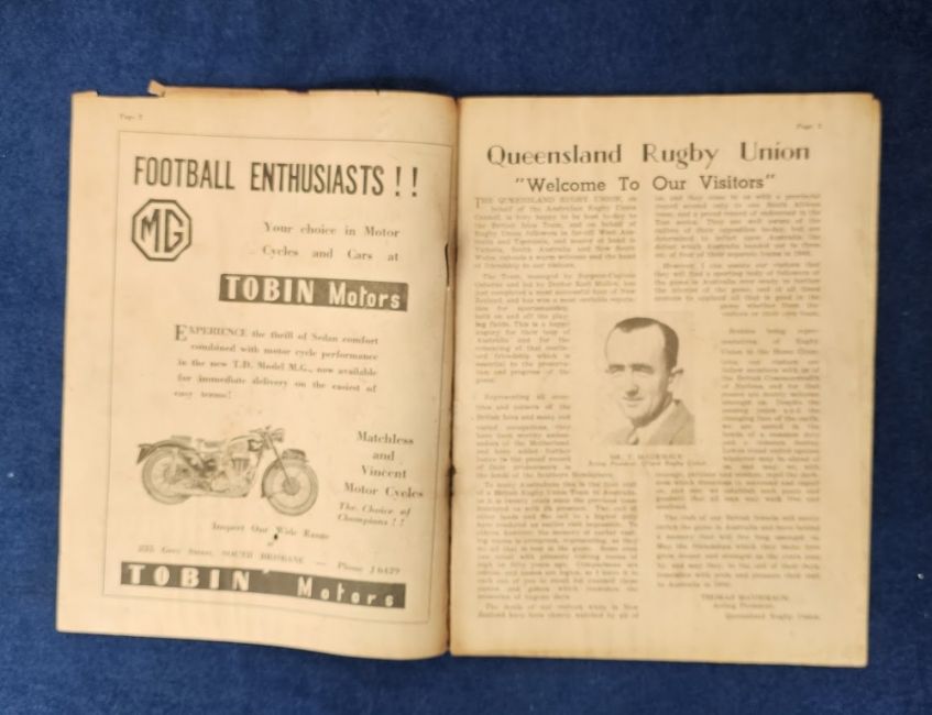 Rugby Union programme, Australia v British Lions, 19 August, 1950 1st Test held in Brisbane, scarce (tape repair to spine, worn & grubby, fair) (1)