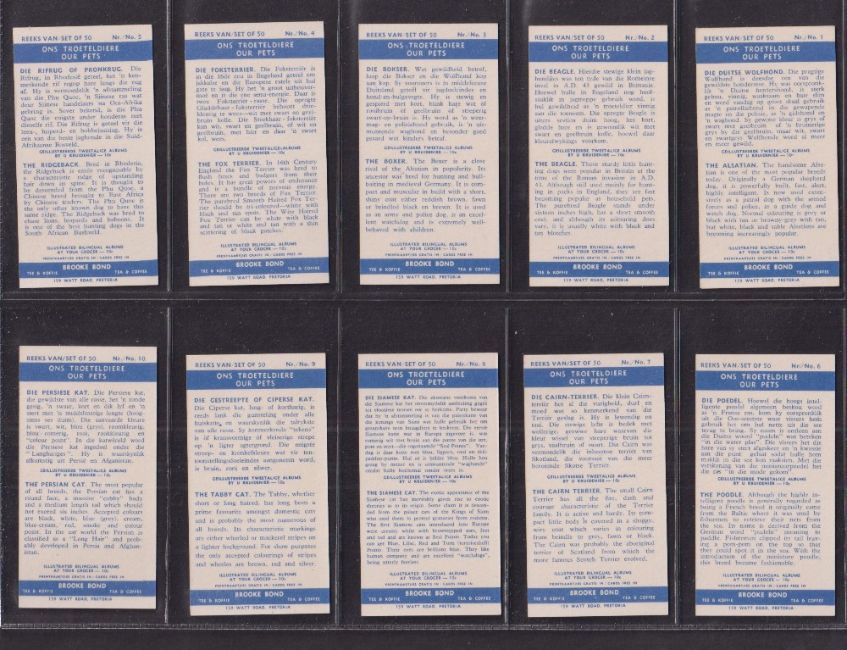 Trade cards, Brooke Bond (South Africa), Our Pets (set, 50 cards) (vg)
