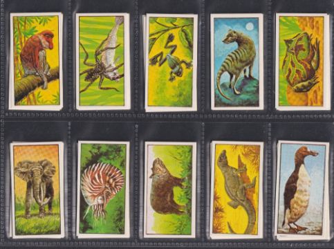 Trade cards, 5 sets, Brooke Bond British Birds, Tetley Tea British Birds, Bassett Living Creatures of Our World, Kellogg's Prehistoric Monsters (Lenticular set of 8), Sanders Jelly Dogs (gd/vg)