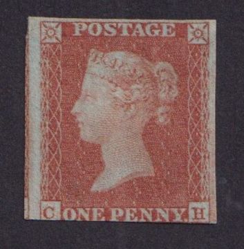 Stamps, GB QV 1d black, CD, 4 margin with a very light red MX cancel, 1841 2d blue, ND, 4 margin looks mint but believed to have been cleaned, 1d red-brown, CH, 3 margin mint without gum. (3)