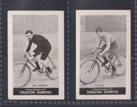 Cigarette cards, Cohen, Weenen, Heroes of Sport, Cyclists, two cards, Champion & Eros Germanos (gd/vg) (2)