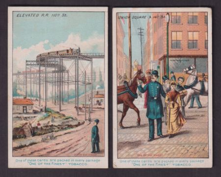 Cigarette cards, USA, Buchner, New York City Scenes, 'X' size, two cards, ref. N287, Elevated R.R., 110th Street & Union Square & 14th St. (gd) (2)