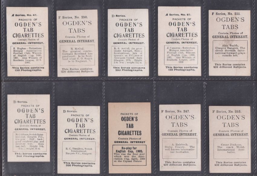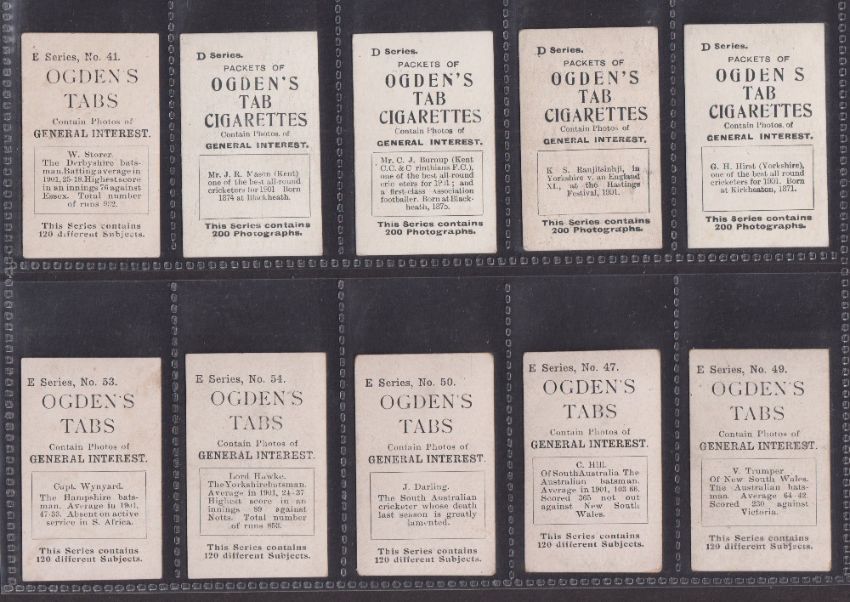 Cigarette cards, Cricket & Football Ogden's Tabs & Guinea Golds, 64 cards, Guinea Gold Cricketers (30 including Ranjitsinhji, various Base M etc), Football (4, Needham, Brandon, Fox, Lewis), Tabs Cricket (15), Tabs Footballers (15) (gen gd a few fair)