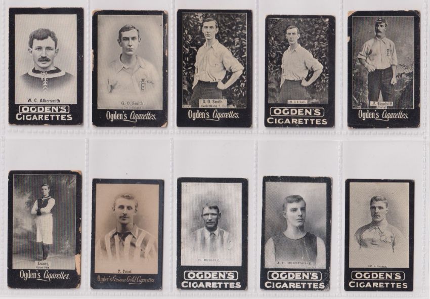 Cigarette cards, Ogden's, a collection of 19 Football cards from Ogden's Tabs and Guinea Gold Series inc. 3 different cards of Geo Smith also W C Athersmith, Goodall, Raisbeck etc (some with edge knocks and sl marks, fair/gd)