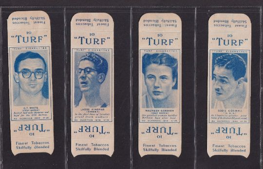 Cigarette cards, Carreras Turf uncut slides (singles) Olympics 1948 (set 50 cards) (some slight blue staining, gd)