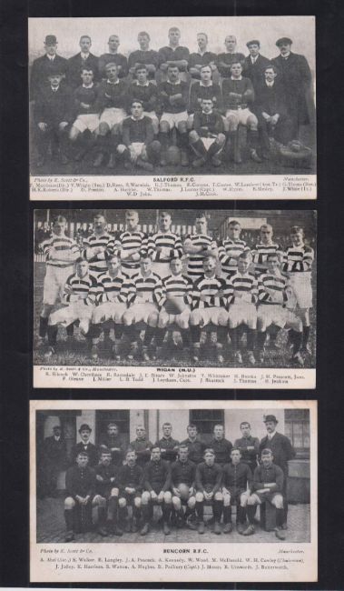 Rugby postcards, three b/w printed cards, all early 1900's, Wigan (N.U.), Salford RFC & Runcorn RFC, all unused (gd) (3)