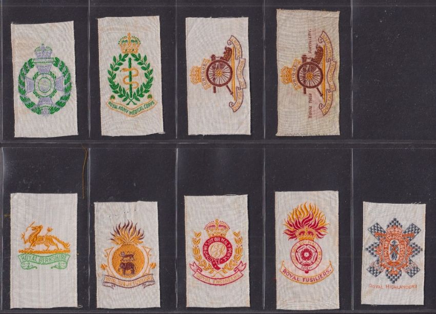 Tobacco silks, Anstie Regimental Badges, 88 silks, approx. 80 different and a few colour variations (some fraying, some slight variation in size, gen about gd)