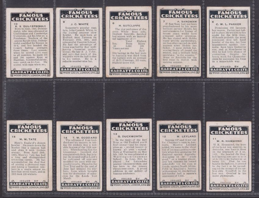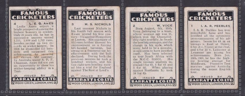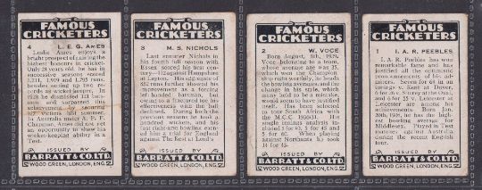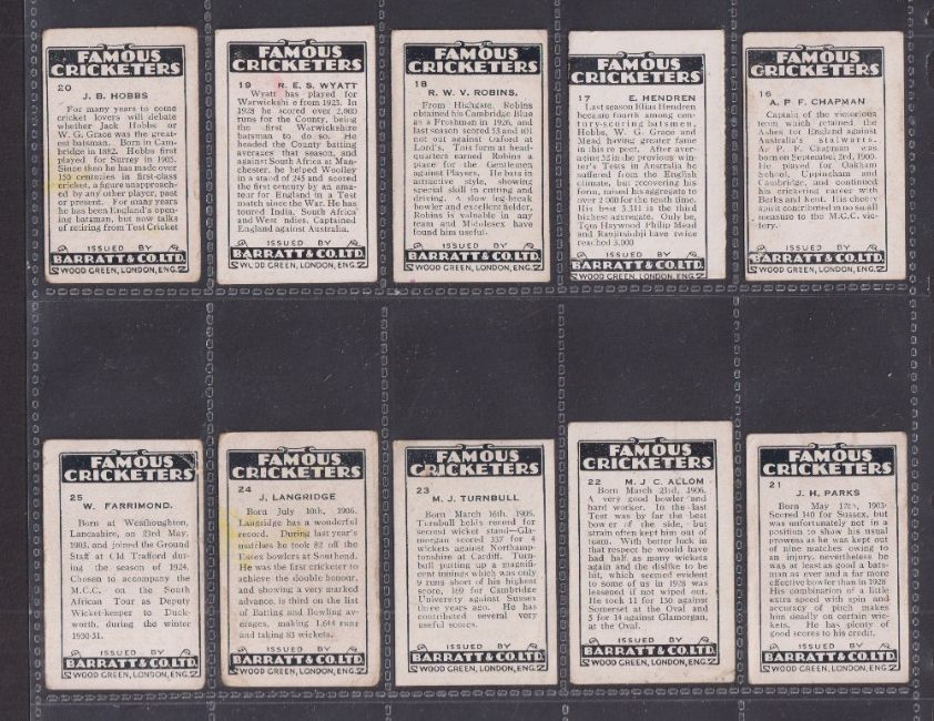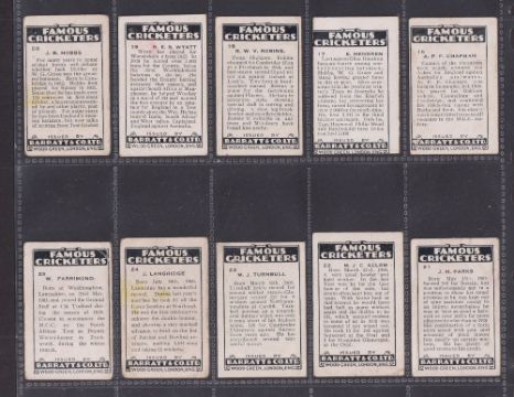 Trade cards, Barratt Famous Cricketers 1930-31 BAR-225 (24/25, missing no. 5) (fair / near gd, a few grubby)