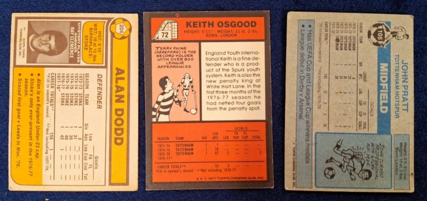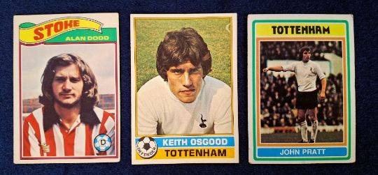 Trade cards, Topps large selection over 1400 cards 1970's Footballers from 3 series, 1976 dark blue/grey backs (162), 1977 red/black backs (797), 1978 Orange backs (469) totals are as stated by vendor but appear to be accurate. No complete sets and some heavy duplication of certain numbers (mixed condition but majority gd)