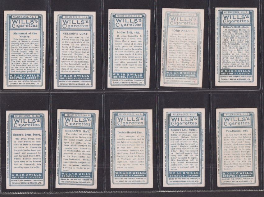 Cigarette cards, Wills Nelson Series (set 50 cards) (gen gd/many better)