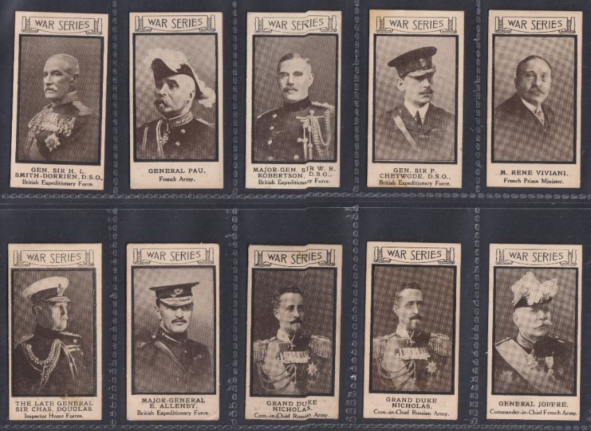 Trade cards, War Portraits, a collection of ten type cards each one issued by a different Company, Derbyshire & Son, Henry Dillon's, J.A. Droney, Eddison, H. Eddowes, The Elite Picture House, Bradford, The Empire (Heanor), Hope Hall Cinema, Jones & Sons & The Kino (Clay Cross) (gd/vg)