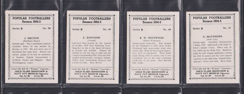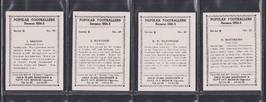 Cigarette cards, R J Hill, Popular Footballers Season 1934-35, series A (set 30 cards) & Series B (set 20 cards) includes Dixie Dean, Stanley Matthews etc (gen vg)