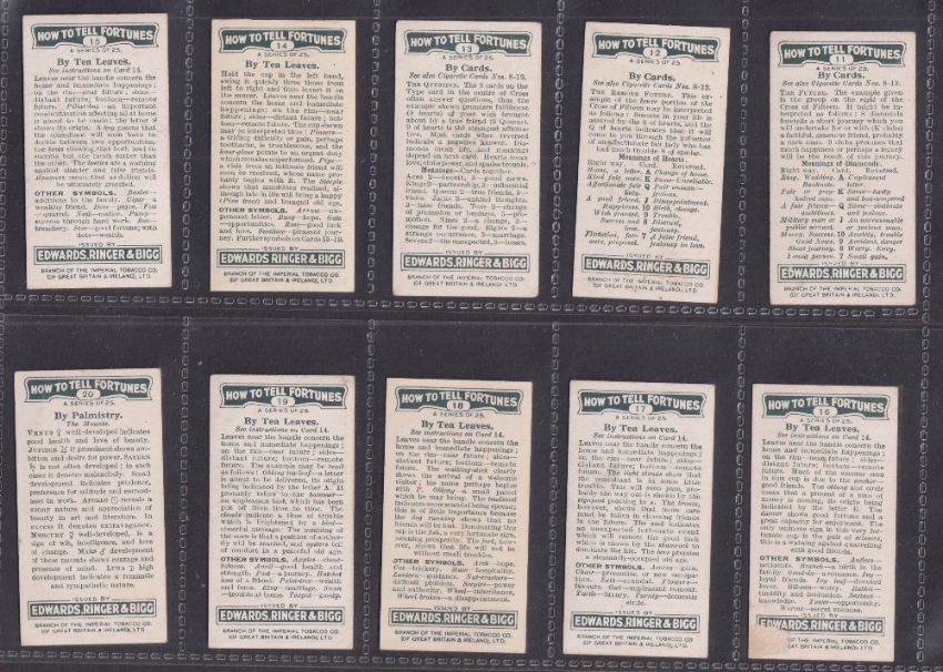 Cigarette cards, Edwards Ringer & Bigg, How to Tell Fortunes (set 25 cards) (a couple with light marks, gen gd)