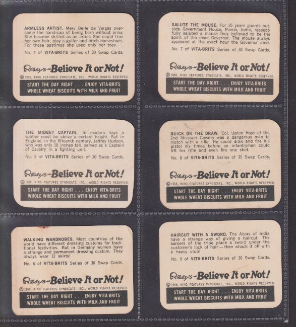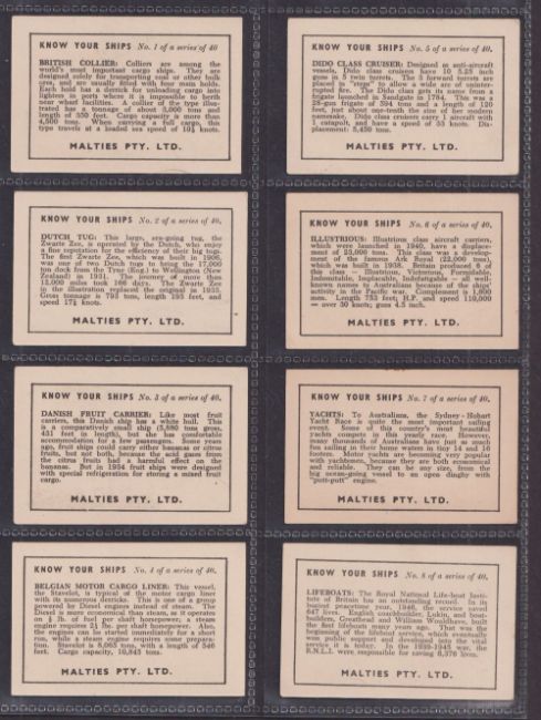 Trade cards, Australia, 3 sets Vita Brits Bushland Wonders, Vita Brits Ripley's Believe it or not (with special album), Malties Know your Ships (gen gd a few with light staining)