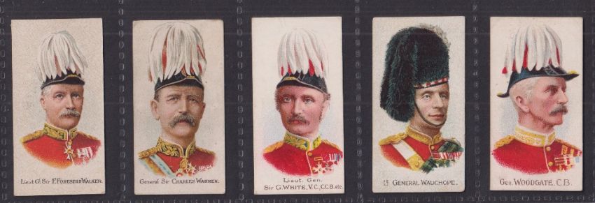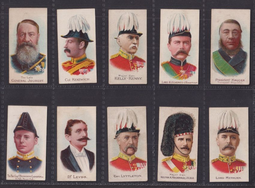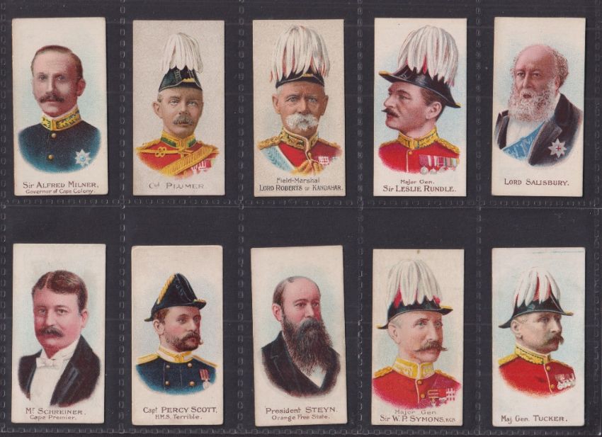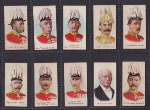 Cigarette cards, Cohen Weenen Boer War Celebrities Coloured (all with 100 back) (set 45 cards) including Baden Powell (backs of cards range in colours from White to Brown otherwise generally gd)