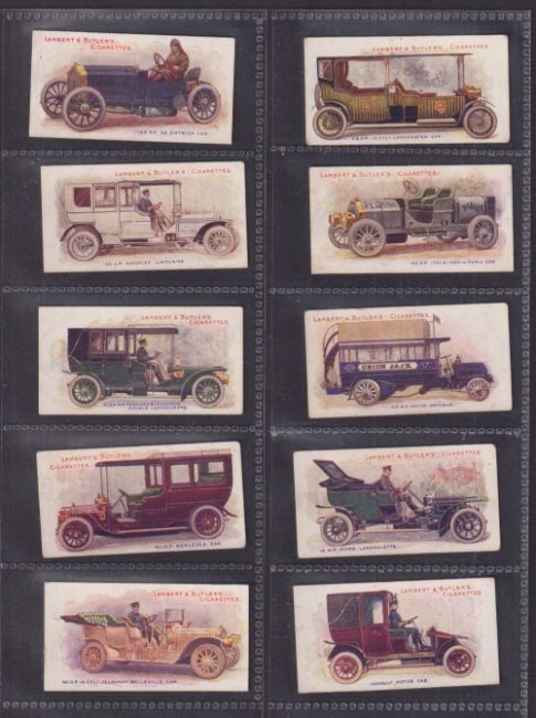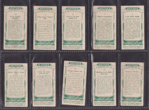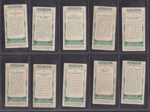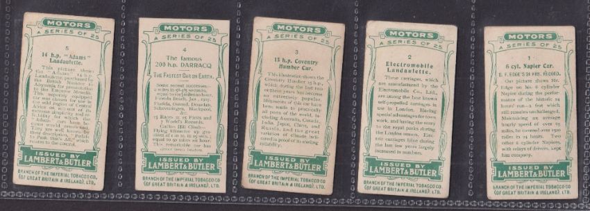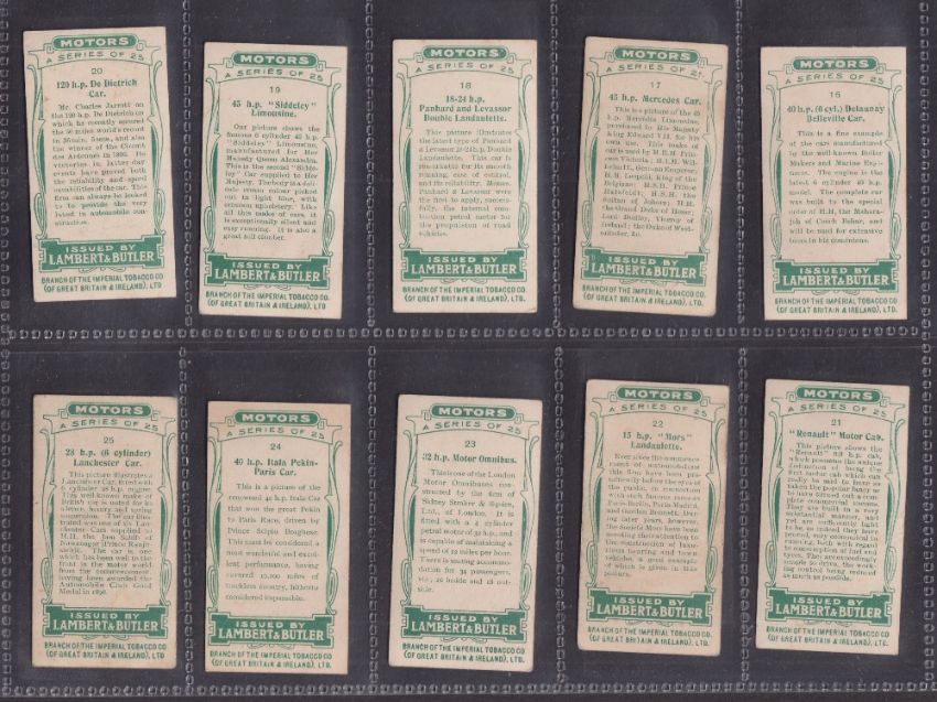 Cigarette cards, Lambert & Butler Motors 1908 (set 25 cards) (about / near gd)