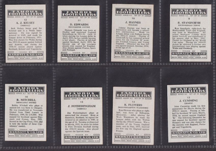 Trade cards, Barratt, Famous Footballers A3 Series (set 50 cards) including Duncan Edwards (gen gd/vg)