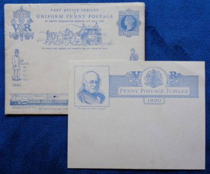 Postcards, 3 early cards, inc. pen and ink style German published card, showing couple sitting on bench (romance) and waving goodbye to loved one sailing away, postally used on 20 Aug 1886 (postmark 22 Aug 1886). Also Gruss Aus style for Heidelberg Von der Terrasse, postally used 9 Aug 1893, and finally unused 'Uniform Penny Post' illustrated cards and envelope (gd)