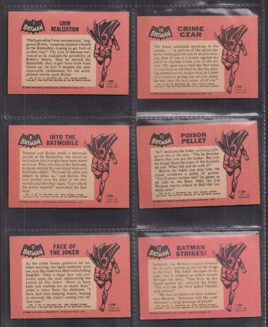 Trade cards, A&BC Gum, Batman (pink backs no Fan Club Panel) (set 55 cards) including 'Batman' & 'Robin Boy Wonder' cards (gd)