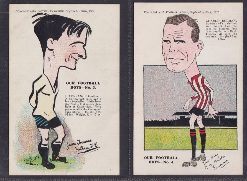 Trade cards, Football Special / Football Favourite Our Football Boys (set P12 cards, plain back) issued September / October 1922 includes C Buchan, J Silcock etc (a few backs slightly grubby gen about / near gd)
